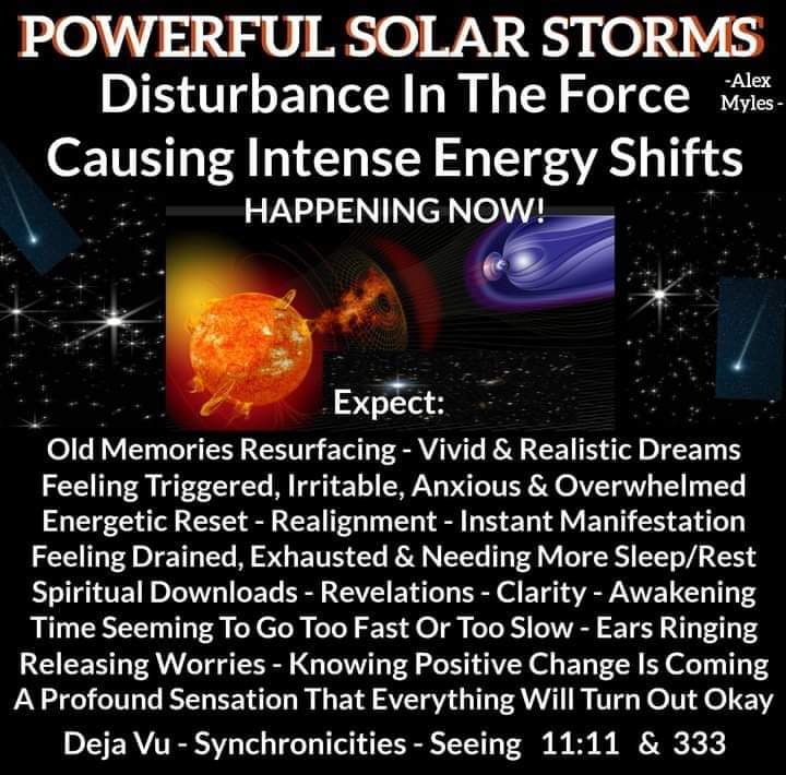 There are currently powerful solar storms occurring and over the next couple of days they are going to intensify, so it is important to pay attention to how we are feeling and to be aware how energetic forces can disrupt our planet’s electromagnetic field and affect all that exists on Earth.