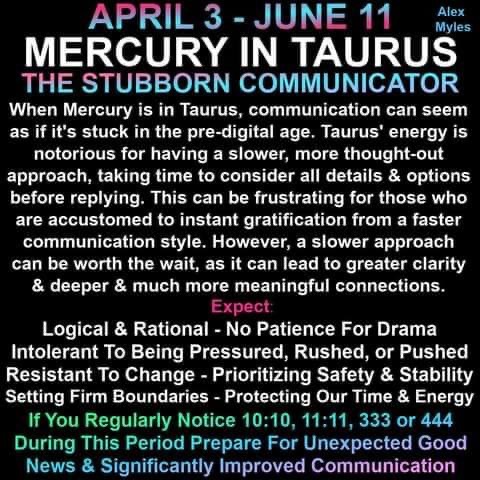 During the transit of Mercury in Taurus, we can expect communication to be influenced by Taurus’ energy, which is known for being practical, grounded, and stubborn.